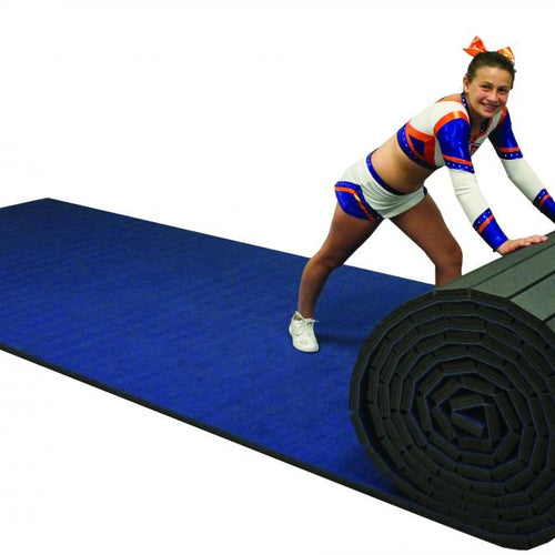 Our flex-cut, competition-ready Carpet Bonded Foam is made with high-quality cross-linked polythylene foam and heat laminated to 26-ounce needle punch carpet, ensuring a secure bond. Rolls are 6' wide by 42' to 43.5' long and are easy to set up, tear down, and store.