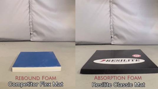 So, what does that mean? Absorption foam absorbs the energy of the object while rebounding foam rebounds and multiplies the energy back into the object. In this video, you can see how the bowling ball responded to hitting a Classic Wrestling Mat (absorption foam) compared to a competitor's Flexi-Roll mat (rebound foam). There is no comparison when it comes to impact protection and athlete safety.