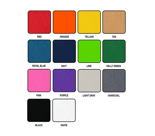 Our heavy duty, double-coated vinyl mat material is available in 14 colors and on the following products: